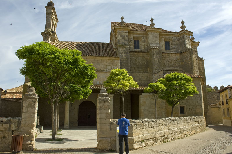 En el interior nos encontramos con un pueblo pequeño, bien ordenado, muy cuidado, con una arquitectura de barro y adobe entreverado con algún edificio noble de piedra y una iglesia de piedra de sillería, con espadaña del siglo XVIII, que comenzó a construirse en el XVI bajo los auspicios de don Pedro de Girón, quinto conde de Urueña y primer duque de Osuna.