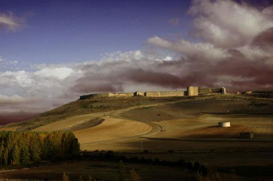 En el oeste de la provincia de Valladolid, en las estribaciones de los Montes Torozos surge como atalaya original Urueña, balcón natural a la Tierra de Campos, coronada por una impresionante muralla medieval del siglo XIV que rodea la Villa. Esa muralla sigue en buena parte la construcción de un primitivo "oppidum" cuya cerca, mucho más amplia, todavía se puede adivinar en fotografías aéreas.